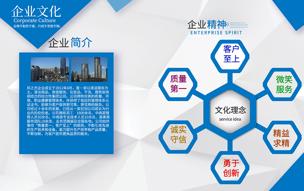 公司于2012年8月成立,致力于將9年的線下管理經(jīng)驗(yàn)進(jìn)行線上整合,復(fù)制推廣,力爭(zhēng)打造一個(gè)全國(guó)性的家庭服務(wù)平臺(tái),并基于家庭服務(wù)的大數(shù)據(jù),融合人工智能,整合服務(wù)資源,為家庭提供全方位,多保障的管家式服務(wù),目前風(fēng)之杰已與全國(guó)百余家企業(yè)簽署戰(zhàn)略合作,通過(guò)全體員工堅(jiān)持不懈的努力,逐步布局全國(guó),完善服務(wù),提高品質(zhì),一切努力,只為盡我所能,凈你所想。